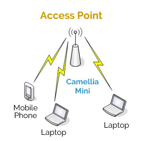 Camellia ARM Controller works as an Access Point, configuring a Wireless Local Area Network.